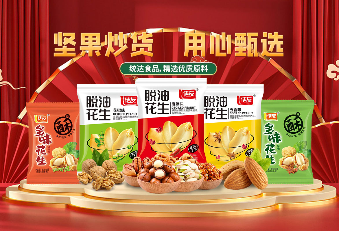 洛陽市統達食品有限公司創建于2013年,坐落于風景秀麗的嵩山腳下,東依省會鄭州、隴海、焦枝兩大鐵路在此交匯,西連高速,洛界高速,縱橫東西南北,207國道,交通便利。當地環境優美。經濟繁榮昌盛,實為興業辦企,鴻運福順的好地方。少林寺,白馬寺,龍門石窟,玄奘故里等名勝古跡星羅棋布,近在咫尺,盡展千年華夏文明。  我廠是一家集生產,研制,銷售為一體的食品加工企業,總投資1500萬元,廠房占地面積5000平方米,員工100余人,其中技術人員20余人,年加工能力達1500余噸。公司以堅果炒貨為主導,自主三大品牌:統達牌、紅仁館牌、佬友牌和授權品牌速達,主要產品有酒鬼花生系列,麻辣花生系列,香辣酥系列,果仁裹粉類系列,怪味胡豆系列,蠶豆、青豆系列等多個品類。產品暢銷全國各地,深受用戶好評。產品選自上等原料經多次精選而制,秉承濃郁的特色風味,保留其原材料的營養和原汁原味,富含不飽和脂肪酸和人體必需的氨基酸和鋅元素,不含膽固醇,黃曲霉素,不添加防腐劑、著色劑;具有濃郁獨特的香味,是真正的“從土地到餐桌”的健康食品。產品特點:色澤金黃,顆粒飽滿,然后經多種工藝加精良的天然配料精制而成,鎖生產出來的產品既保持著產品的獨到的口味,又不失產品天然的營養成分,滋味純正,辣椒鮮紅食之麻,辣,香,酥,甜,口感獨特,食后滿口生香,欲罷不能。久食不厭,老少皆宜,居家旅游,佐食配茶,宴賓饋友之佳品,深受廣大顧客歡迎和贊揚?! ∥覀儗⒁跃康墓に?,科學的管理,嚴格的質量控制,優異的品質保障,以誠信,創新,勤奮,求實的企業精神,立于強者之林,迎接新的挑戰。以飽滿的熱情迎接與你的合作。  本公司“以質量求生存,以誠信求發展”歡迎有志之士加入我們的團隊,攜手共創美好明天!